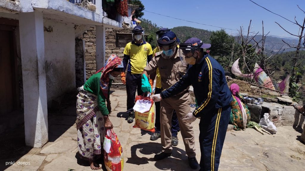 जिस पर तत्काल ही SDRF के इंस्पेक्टर बालम सिंह बजेली टीम सहित आवश्यक राशन सामग्री,आटा चावल, दाल मसाले आलू प्याज तेल लेकर सम्बंधित गाँव पहुँचे , और जरूरतमंद परिवारों को प्रदान किया। कुशलता प्राप्त की ओर कोविड सम्बन्धी आवश्यक हिदायते दी, साथ ही अन्य किसी प्रकार की आवश्यकता होने पर सम्पर्क हेतु कहा।