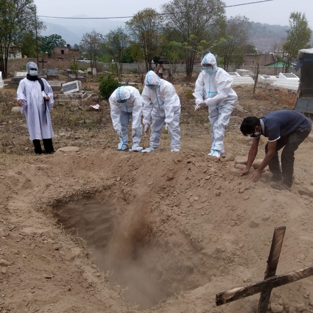 आज कोटद्वार में रात्रि में हुए एक व्यक्ति की मृत्यु पर भी शव दफनाने हेतु SDRF को सूचित किया गया, जिस पर टीम हॉस्पिटल से शव को लेकर सम्बंधित कब्रिस्तान में पहंची, मृतक के एक परिचित को भी सुरक्षा उपकरण पहनाए गए, जिसकी सहायता से शव को कब्रिस्तान में दफनाया गया।