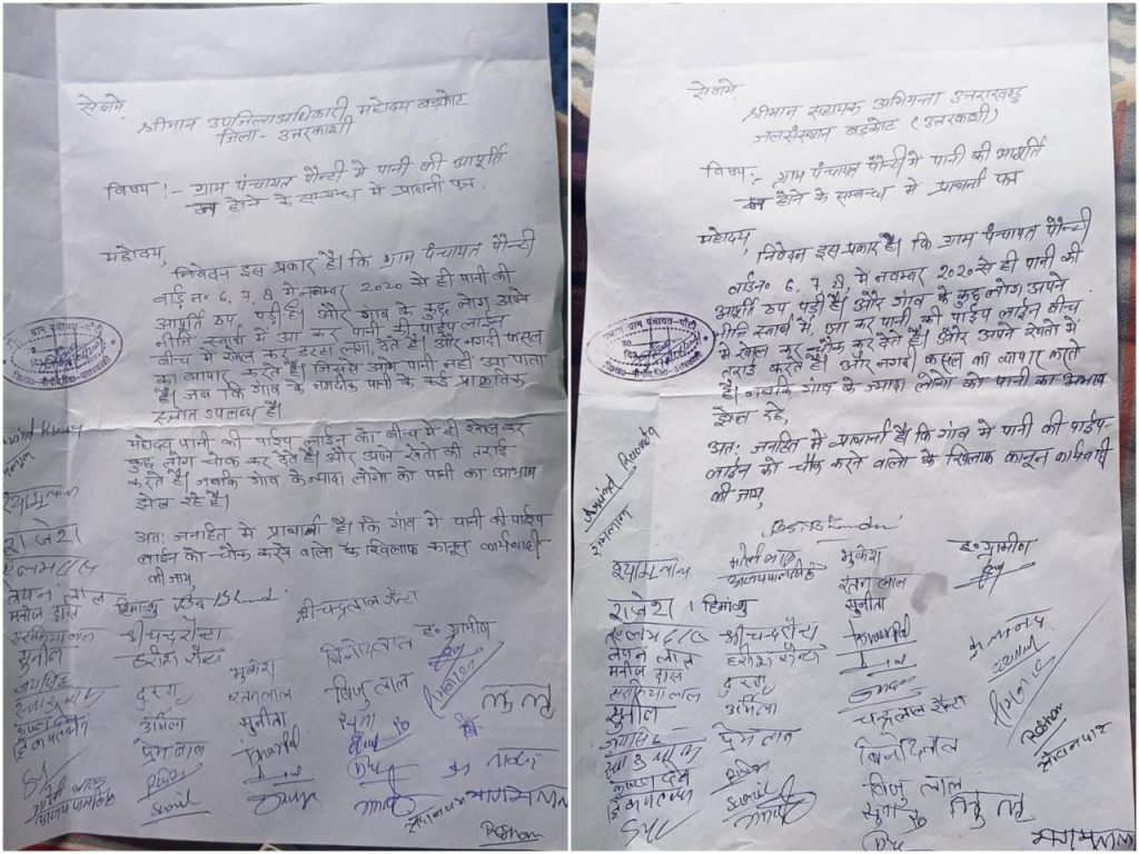 ग्रामीणों ने अधिकारी को लिखे पत्र में अपनी नाराजगी जाहिर कर बताया कि एक तरफ विभाग जल जीवन मिशन के अन्तर्गत लोगों की प्यास बुझाने की बात करता है और दूसरी ओर लोग परेशान जिसका कि ग्रामीणों ने समाधान की मांग उठाई है।